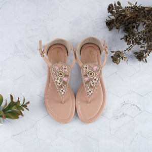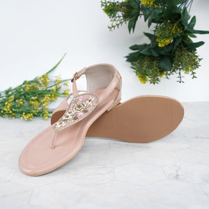 Step into elegance with our Blush Pink Beaded T-Strap Sandals, beautifully handcrafted to blend timeless charm with modern comfort. The intricate bead and sequin detailing in soft pink, gold, and pearl tones adds a delicate sparkle, making these sandals perfect for festive occasions or everyday sophistication.