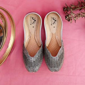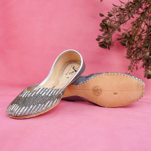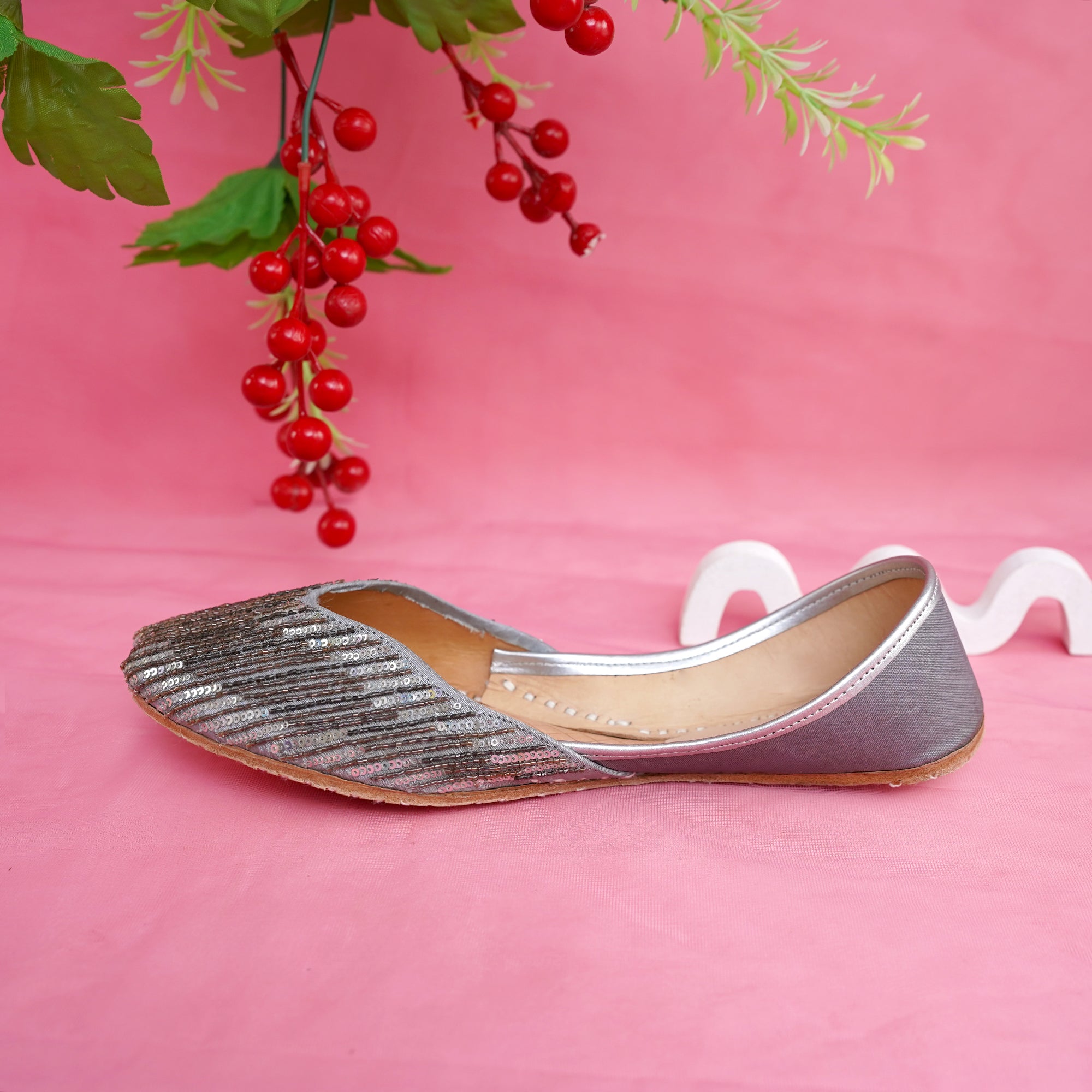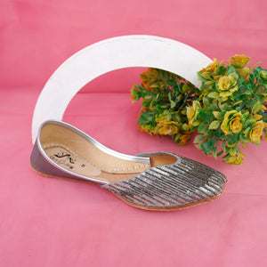 Grey embalish lather khussa – Elegant and stylish footwear crafted for comfort and versatility. Perfect for casual outings, festive events, and everyday wear. Made with high-quality materials to ensure durability and style.