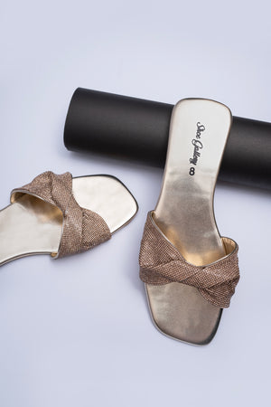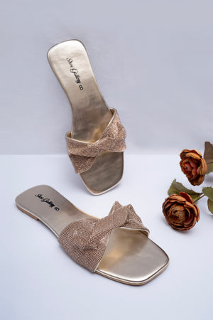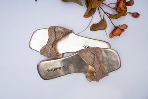 Step into effortless elegance with our Gold Knot Flat Sandals, designed to add a touch of luxury to your everyday look. Crafted with a shimmering gold finish and a beautifully textured knot strap, these flats combine comfort with sophistication.